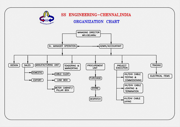 SS Engineering, Chennai, Tamil Nadu (An “A” Grade Government of Tamilnadu Certified, Electrical Contracting Company)was established in 2006 as a Partnership Firm specializing in the field of providing infrastructure oriented, installation and Testing support services to the Electrical High Voltage power transmission sector, besides having interests in manufacturing and fabrication of specialized products such as Cable Cleats and Link Boxes for High Voltage Cable systems.